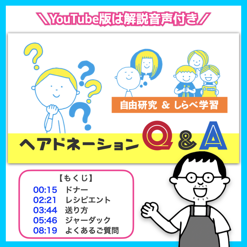 (4)【夏休みの自由研究 ヘアドネーションQ&A】です。こちらは、(3) 夏休みの自由研究 ヘアドネーションQ&A の続きです。